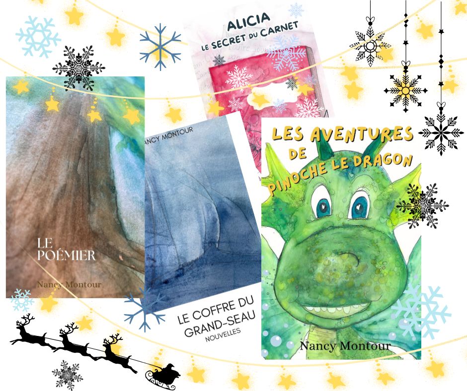 Découvrez ou redécouvrez Le Poémier, Les aventures de Pinoche le dragon, Le secret du carnet et Le coffre du Grand-Seau. Partagez-les en famille et créez des traditions douces, créatives et inoubliables.